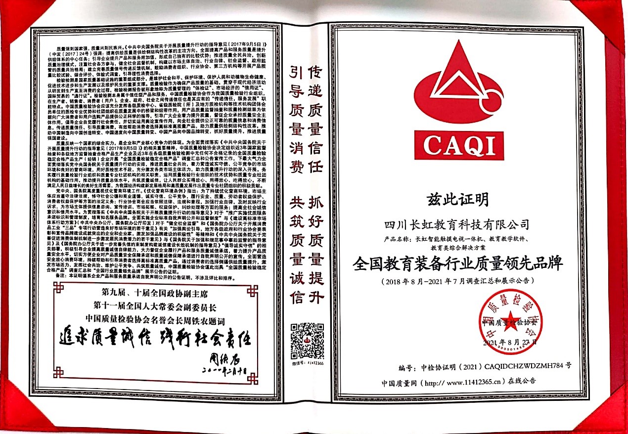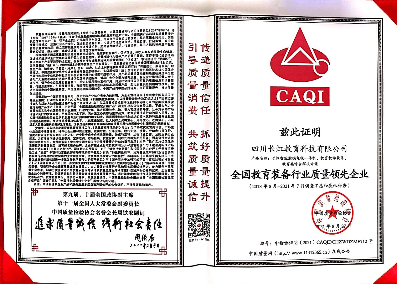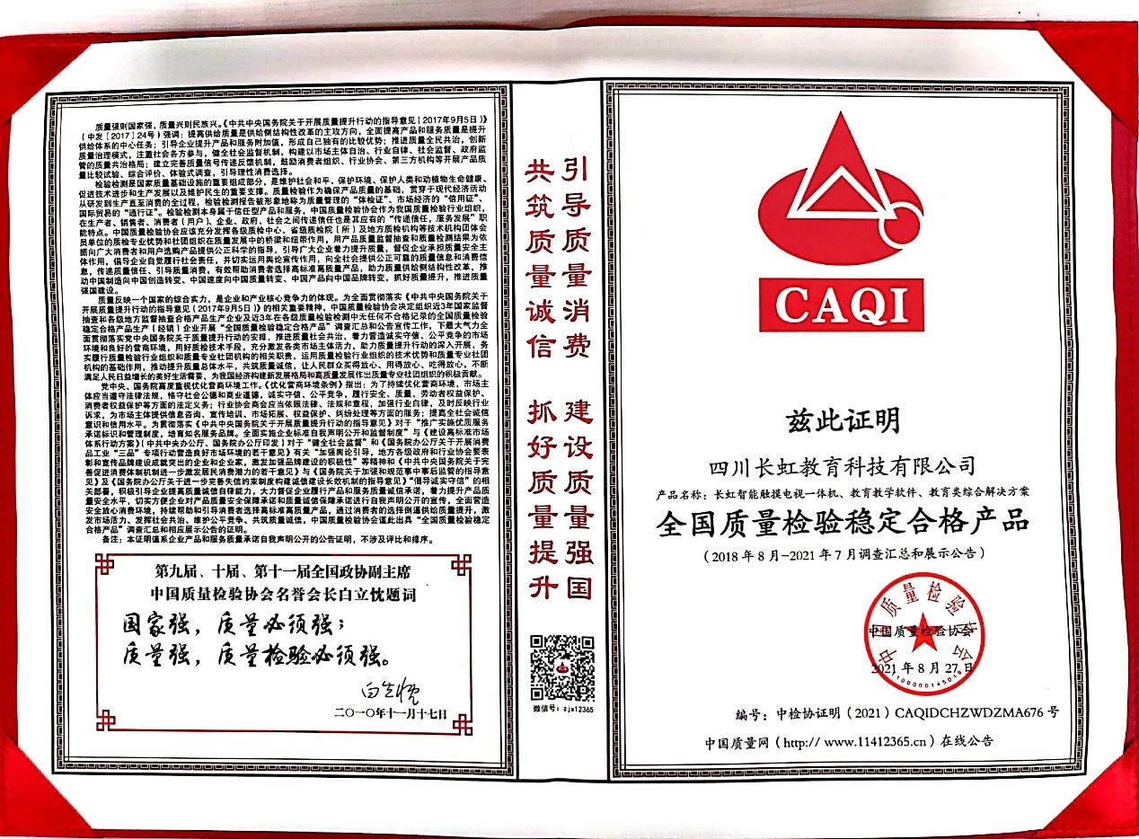 我國“質(zhì)量月”活動始于1978年,至今已有40余年的歷史。一直旨在提高全民質(zhì)量意識,營造人人關(guān)心質(zhì)量、重視質(zhì)量、追求質(zhì)量、創(chuàng)造質(zhì)量、享受質(zhì)量的良好社會氛圍,提升國家質(zhì)量競爭力,推進(jìn)建設(shè)質(zhì)量強國。全國“質(zhì)量月”是國家權(quán)威質(zhì)檢機構(gòu)針對產(chǎn)品質(zhì)量的一次全國性大考,在質(zhì)量把控領(lǐng)域有著重要的參考和示范意義。長虹教育科技此次一舉斬獲三項質(zhì)量殊榮毫無疑問是憑借穩(wěn)定可靠的產(chǎn)品質(zhì)量取勝。