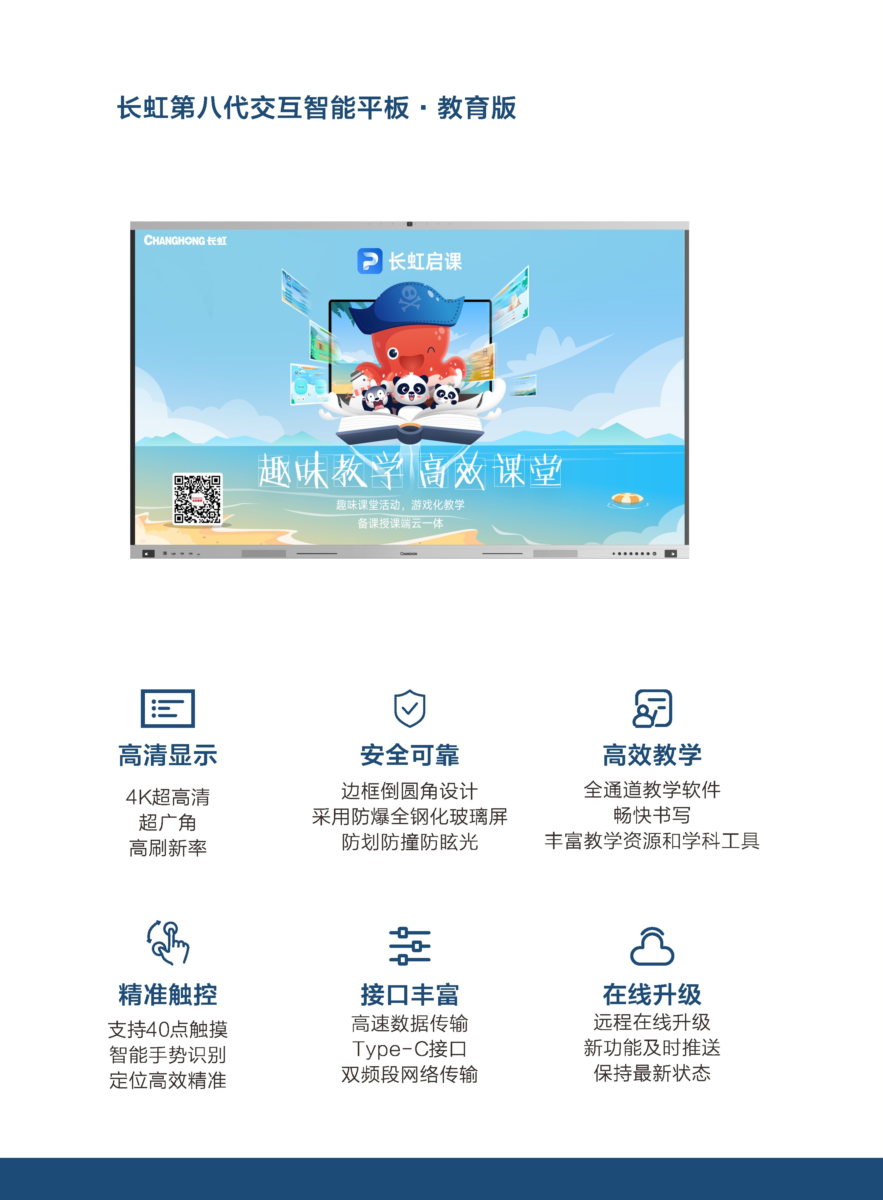 交互智能平板、智慧黑板、信創國產化智慧終端、教學相關軟件、端云一體軟硬件產品、數智校園硬件工具與數字課堂教學應用、新型智慧教室解決方案、數智課堂解決方案、數智教育區縣解決方案、職校教育信息化解決方案、高校智慧教室解決方案、信創智能終端及平臺解決方案,系統運營維護整體解決方案、Ai智慧體育解決方案