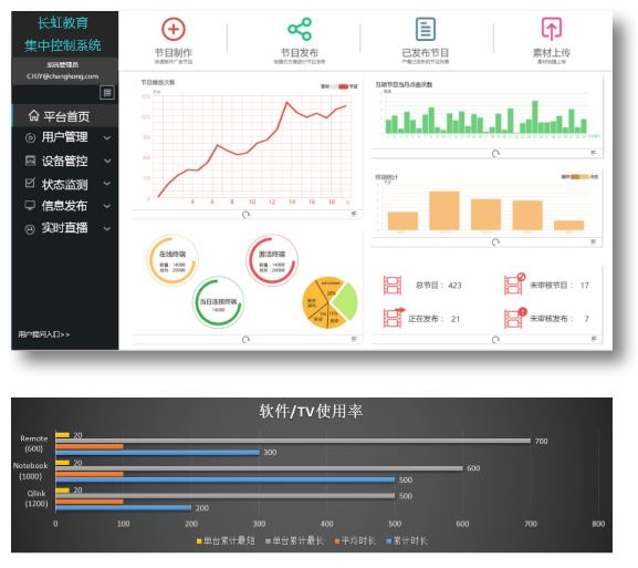 BOX、學(xué)生平板、教室電腦、空氣凈化器等學(xué)校使用的相關(guān)設(shè)備越來(lái)越多,必然會(huì)帶來(lái)管理上的問(wèn)題。該系統(tǒng)還可集中控制實(shí)現(xiàn)對(duì)眾多設(shè)備的管理和控制、數(shù)據(jù)管理。并能對(duì)顯示終端進(jìn)行信息發(fā)布,實(shí)施直播,可以讓學(xué)校公開(kāi)課、家長(zhǎng)會(huì)、各類講座實(shí)施的播放和觀看。從終端搜集來(lái)的數(shù)據(jù),為學(xué)校后期的數(shù)據(jù)分析、數(shù)據(jù)應(yīng)用提供有效支撐,提高我們信息化設(shè)備的使用效率。