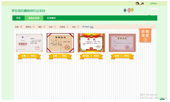 榮譽申報:記錄學生每學期的獲獎狀況,且申報需要審核和公示,通過后可自動匯總名到學生檔案袋;