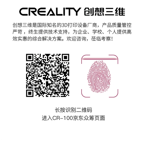 目前,創(chuàng)想三維智能迷你3D打印機(jī)CR-100眾籌活動(dòng)正在火熱進(jìn)行中。不過需要注意的是,由于本次參與眾籌的設(shè)備數(shù)量不多,還在為親友新年禮物苦惱的小伙伴們可要抓緊了,感興趣的現(xiàn)在可直接進(jìn)入京東金融眾籌平臺(tái)參與活動(dòng)哦!
