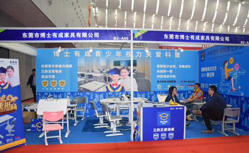 展覽會以“展示、交流、合作、發展”為主題,為期三天,展示面積12000平方米,500余個展位,吸引了近百家品牌教育裝備企業參展,展示品類涵蓋互動教學及智慧教育、在線教育應用及服務、智慧校園與校園信息化、實驗室設備、圖書、體育器材等。本屆展覽會,博士有成攜兒童學習桌、兒童矯姿椅以及校園學習桌等產品亮相現場。
