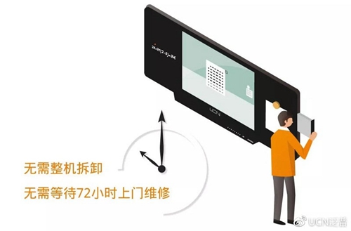 黑板固件出現(xiàn)故障時(shí), E-box專利設(shè)計(jì)將視頻卡、OPS等易損部件全部集成到一個(gè)小盒子里。只要從右側(cè)直接拉出來更換備份Box,不需要彎腰或者爬凳的復(fù)雜操作,更不需要整機(jī)拆卸,即便是女老師也能輕輕松松完成,30min內(nèi)解決問題。如果是其他問題,泛普的技術(shù)服務(wù)團(tuán)隊(duì)將在4小時(shí)內(nèi)抵達(dá)現(xiàn)場。這時(shí),維修人員通過將黑板往上翻轉(zhuǎn)即可進(jìn)行故障的排查,不用像以前一樣將整塊黑板從墻上拆下來,大大縮短了維修時(shí)間。