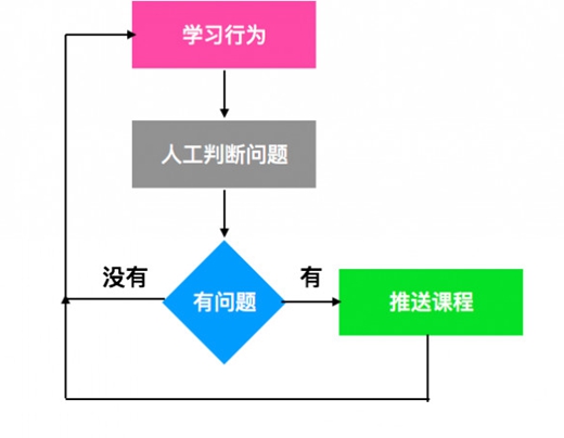 在零級的自適應學習產品中,學生會發生學習行為,真人教師通過數據采集判斷學習行為,推送學習資源。