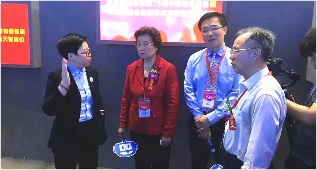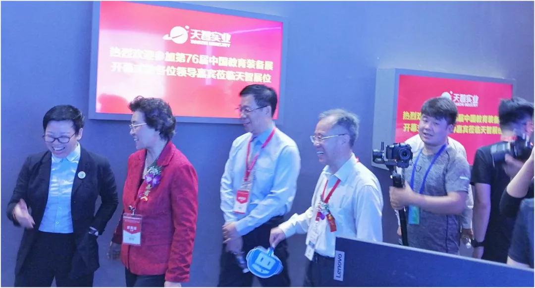 中國(guó)關(guān)心下一代工作委員會(huì)副主任、中紀(jì)委駐教育部紀(jì)檢組原組長(zhǎng)田淑蘭,中國(guó)教育裝備行業(yè)協(xié)會(huì)副會(huì)長(zhǎng)、秘書長(zhǎng)夏國(guó)明,以及參加開幕式的領(lǐng)導(dǎo)嘉賓蒞臨天智展位參觀指導(dǎo),并對(duì)天智的品牌運(yùn)營(yíng)、產(chǎn)品創(chuàng)新和服務(wù)水準(zhǔn),尤其是天智能將產(chǎn)品創(chuàng)新與教育改革深度契合的教育情懷,給予了高度贊譽(yù)!