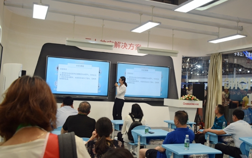 本屆展會,長虹教育攜云上校園解決方案、云上課堂解決方案、陽光明廚解決方案、校園數據指揮中心和校園多媒體信息終端備授課教學系統等新產品應用亮相現場。