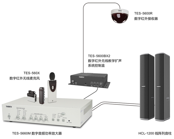 為提供更好的聲效,讓數字紅外傳輸高保真音質的優點得以充分體現,TAIDEN還研發了配套的專業級DSP數字音頻處理功放與音柱。TES-5600M DSP功放內置Webserver,可以調節麥克風參量均衡、圖示均衡及延時等,同時還支持場景保存。TAIDEN HCL-1000系列線陣列音柱具有很強的垂直指向性,適合遠距離擴聲,聲場覆蓋更均勻,使整個教室擴聲系統(包括建聲和電聲)的傳聲增益更高而不易引起嘯叫,能夠充分滿足普通教室與大型階梯教室的不同擴聲需求;另外,很多教室有建聲缺陷,天花和墻面沒有吸聲體,容易產生回聲等聲學缺陷,TAIDEN HCL-1000系列音柱在水平方向上覆蓋角度是150度,而在垂直方向上是20度,能夠有效減少天花板的反射聲,從而有效解決建聲缺陷,提高教室里的語言清晰度。