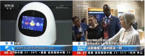 5月17日,在國際人工智能與教育大會期間,出席大會的聯合國教科文組織教育助理總干事斯蒂芬妮亞·賈尼尼,協同日本、新加坡、南蘇丹等國的教育部長和高級代表,到訪科大訊飛北京公司,實地參觀訊飛展廳,在體驗阿爾法蛋人工智能機器人時稱贊到:這就像是兒童的朋友一樣!