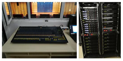主擴聲調音臺采用的是32路調音臺既可以滿足簡單語言擴聲需求又可以滿足復雜的演出需求,跟隨不同場景靈活調控。對應主輔功放的匹配,除提高音箱工作時的安全性和穩定性外,能夠最大忠實還原聲音本色,表現更加生動、有力。