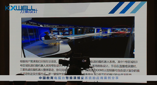 應用于中國教育電視臺的KXWELL自動化演播室方案充分運用并融合了廣播電視領域多項領先的技術和成果,以軌道拍攝機器人系統為核心,配合分鏡頭腳本編輯系統,以專業的廣播電視播出標準為藍本,搭配智能化的廣播級拍攝控制系統,高效的完成高質量演播室現場節目的拍攝、錄制與播出任務。