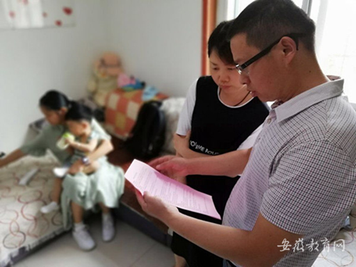 深入宣傳,提高知曉率。扶貧工作組頂著烈日,腳踏熱浪,深入村郢,挨戶進行走訪,深入宣傳。對長期不在家的建檔立卡戶,山南中學利用微信、QQ和電話等方式,聯(lián)系上家長,宣傳政策,確保政策宣講和學生政策享受到位,提高群眾滿意度。董崗中心校向家長發(fā)放《肥西縣教育扶貧政策解讀》宣傳單,并逐項講解,保證家長聽得懂、記得住。