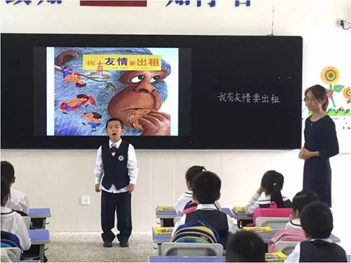 在松崗實驗學校的閱讀分享課中,學生們準備了各種各樣個性的閱讀分享活動,既有課件展示,也有演講表演,既有名著小說,也有繪本圖片。