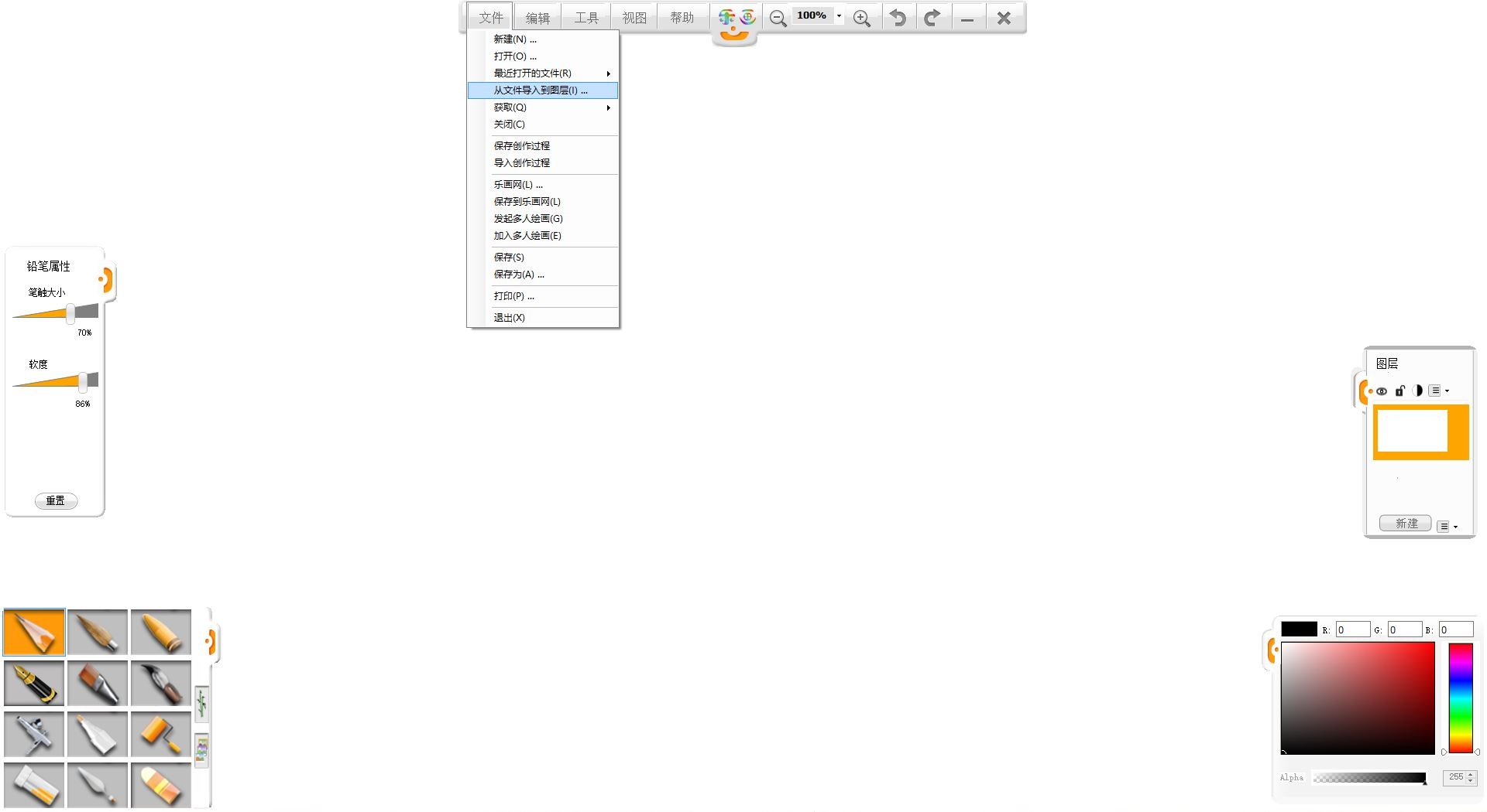 2.在“文件”菜單下選擇“從文件導入到圖層”,添加背景圖片。