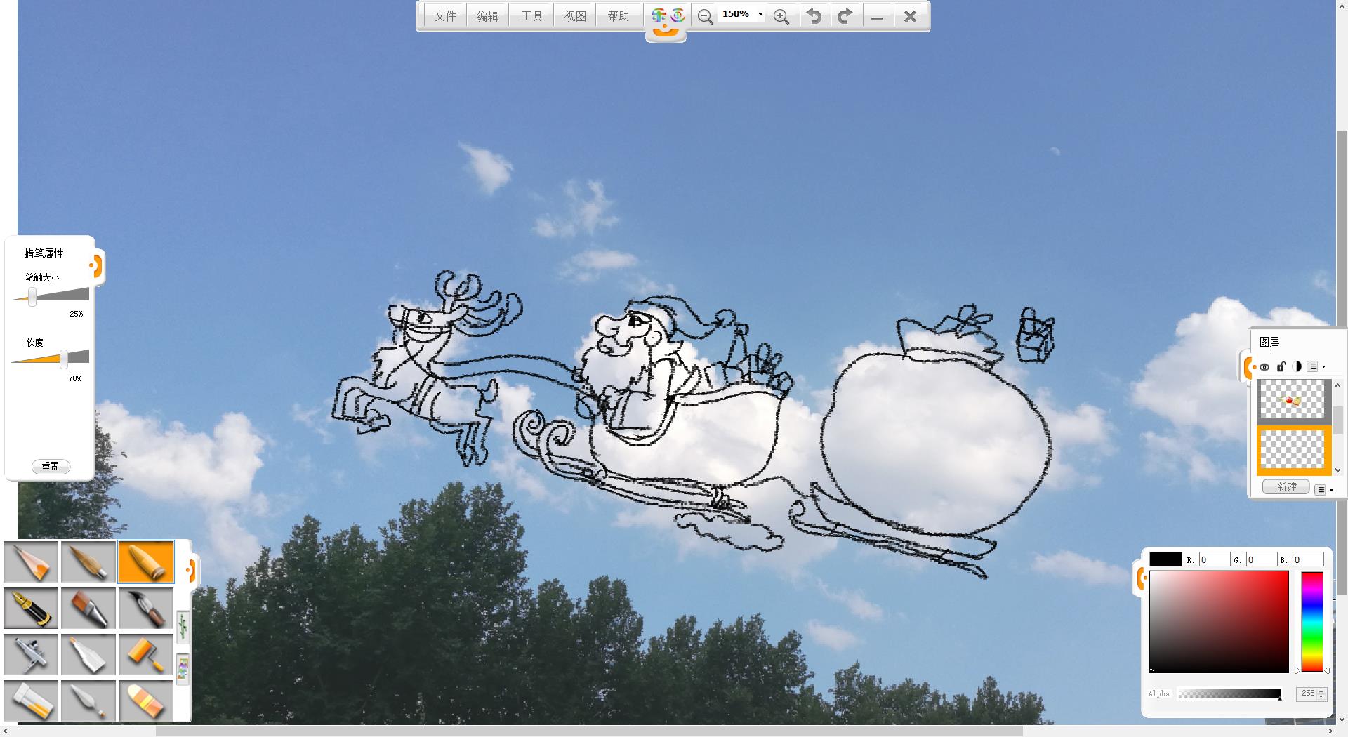 5.選擇蠟筆筆觸,繪制線稿。