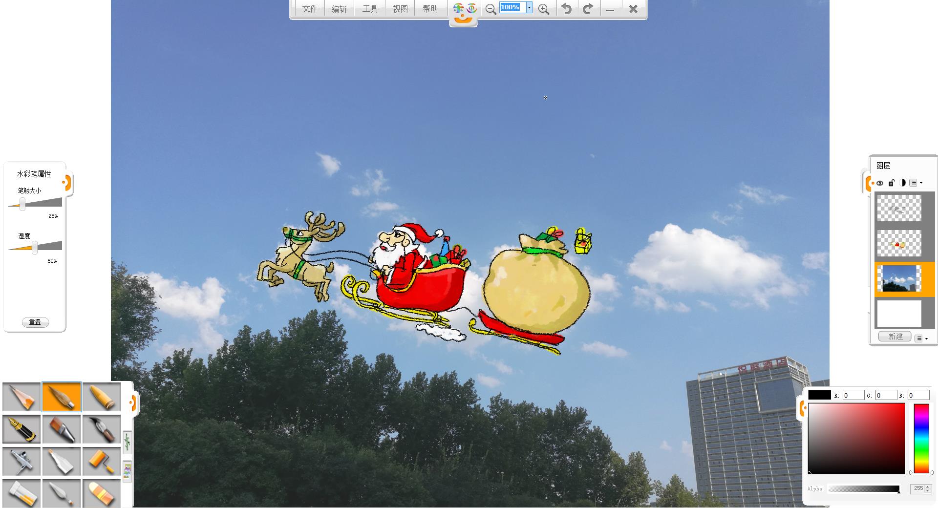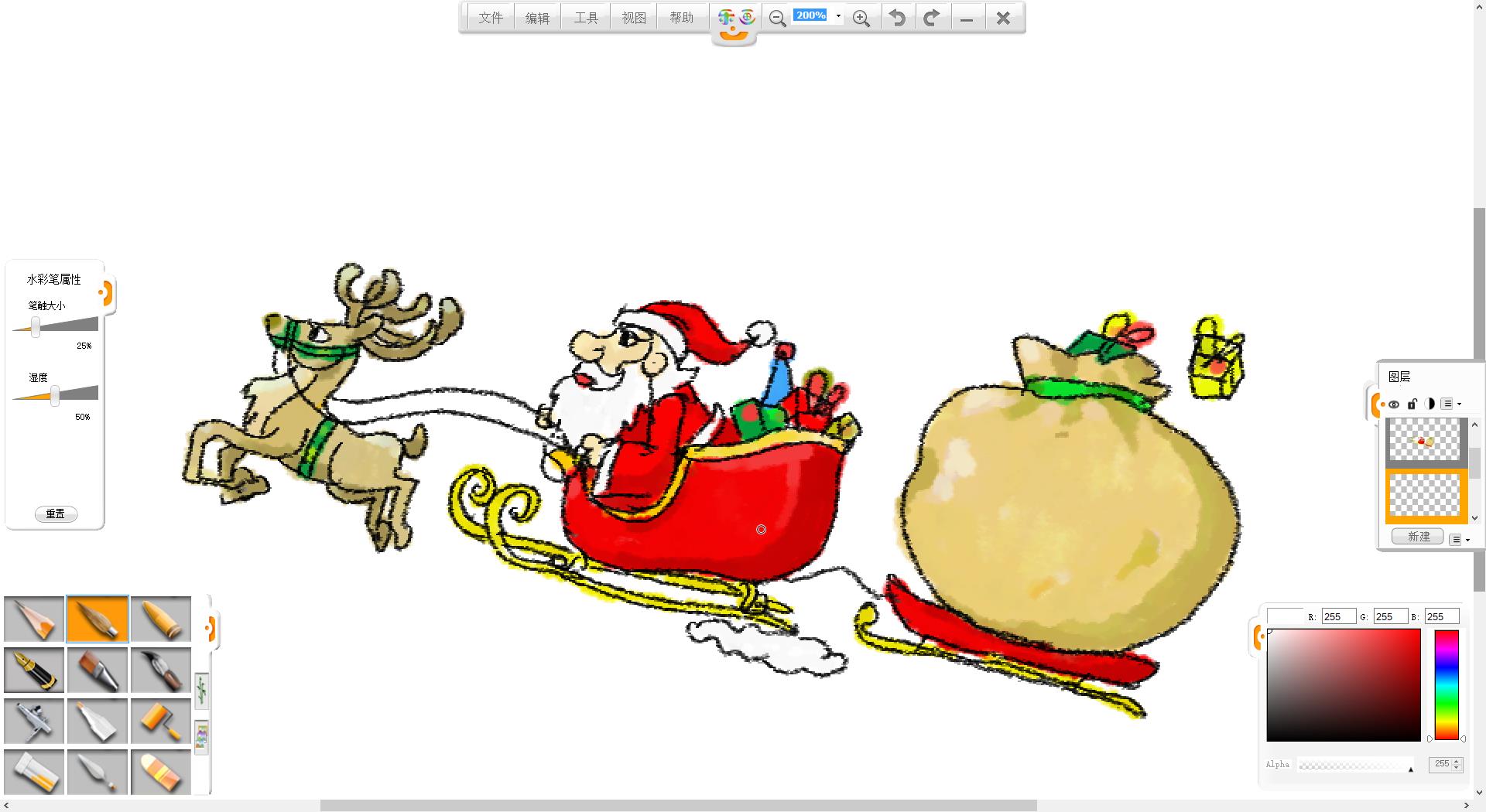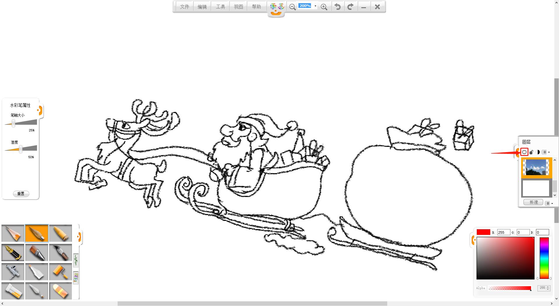 7.新建一個圖層,使用水彩筆筆觸進行上色。