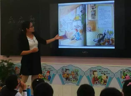 站在講臺上的是來自寶島臺灣的科學老師,正在用新的教學方法,向同學們講解這些問題。通過圖片、視頻的展示講解各類飛機的構造及功能,生動形象,給同學們帶來深刻的視覺印象。