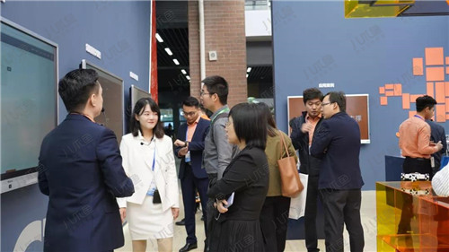 在主講區(qū),八爪魚(yú)教育的講師們?yōu)閰⒂^領(lǐng)導(dǎo)現(xiàn)場(chǎng)講解新課程及新品內(nèi)容。