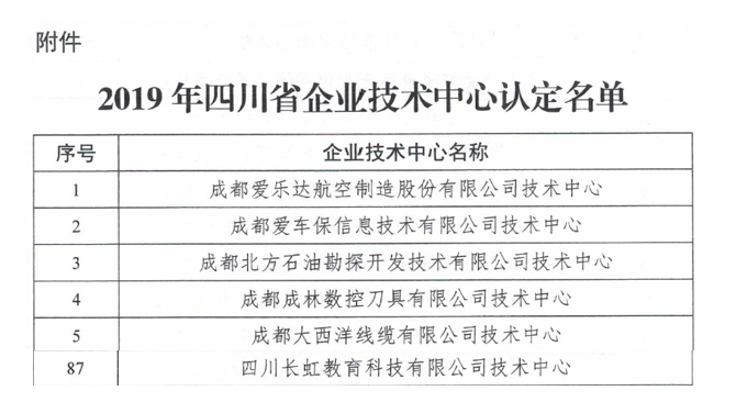長虹教育科技被認定為四川省企業技術中心