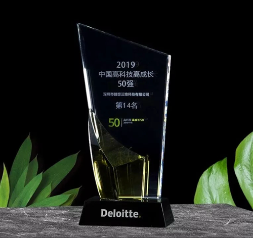 創想三維獲“2019中國高科技高成長50強”殊榮