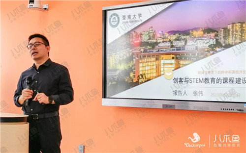 暨南大學副教授張偉博士為教師們進行了《新高考背景下的跨學科課程設計》STEAM教育講座。張偉博士以問題引入,讓教師們思索自身工作的意義,能讓學生獲得什么,今天的學習對于二十年后的學生所具有的價值。