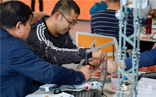 老師們分為幾組,彼此協作,在講師的協助下,每個小組都完成了自己的作品。通過體驗課,老師們對于STEAM教育的課堂教學設計有了更深刻的理解和興趣,并與講師交流課程開展會遇到的問題和困惑。