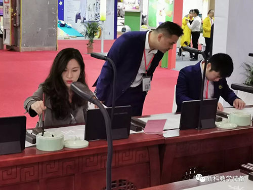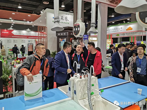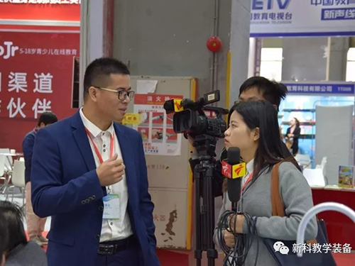 這一次盛大的教育裝備展覽會中,新科教育裝備(簡稱“新科”)也攜帶了自主研發的教育裝備進駐展會,包括智慧書法教室、智慧頂裝實驗室及理化生實驗操作考評系統、新型材料的實驗室桌椅等產品。在現場,有不少教育行業專家、商家上前咨詢及多家媒體前來采訪報道,為“新科”展位累積了不少人氣。