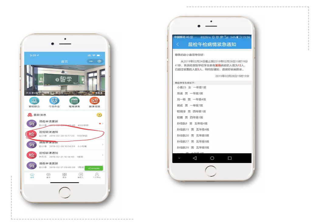 在疫情期間,為滿足寒假期間24小時(shí)值班制度,堅(jiān)持疫情防控“日?qǐng)?bào)告、零報(bào)告”制度,班主任、校領(lǐng)導(dǎo)可通過(guò)天立泰智慧校園——疫情防控功能,每天跟蹤學(xué)生在家健康狀況,發(fā)現(xiàn)疫情或特殊情況第一時(shí)間上報(bào),堅(jiān)決杜絕“遲報(bào)、漏報(bào)、錯(cuò)報(bào)、不報(bào)”等問(wèn)題的發(fā)生。