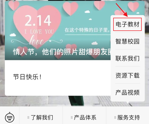 在下方菜單欄中點擊“電子教材”