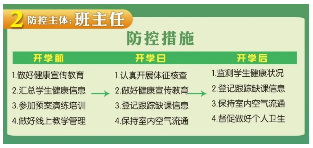 根據疫情防控的需要,合肥市教育局在2月25日下午發布了《合肥中小學幼兒園新冠肺炎疫情防控流程圖》以流程圖的形式詳細規定了學校、班主任、家長、學生四個主體在開學前、開學日、開學后所要采取的每項防控措施。