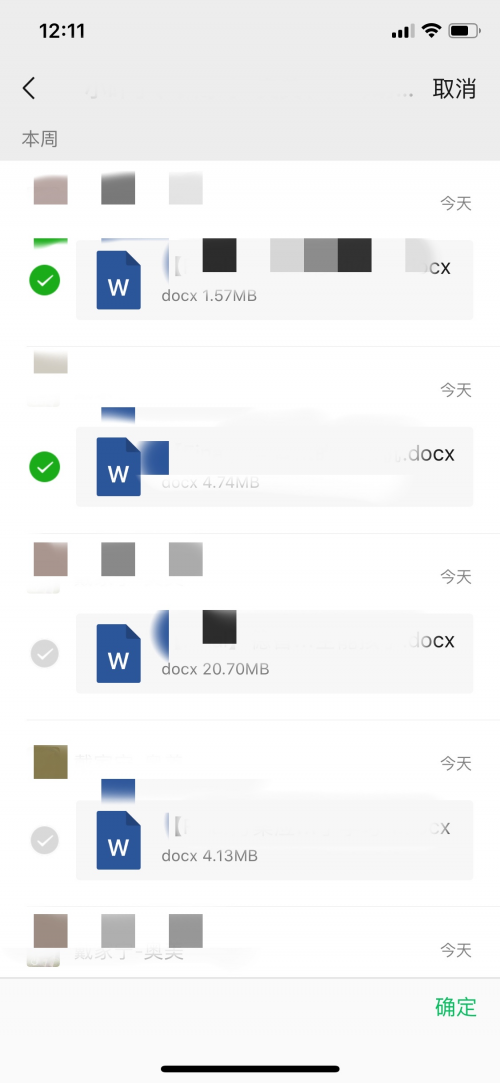 (3)選擇需要打印文檔所在的聊天對(duì)話,并勾選需要打印的文檔