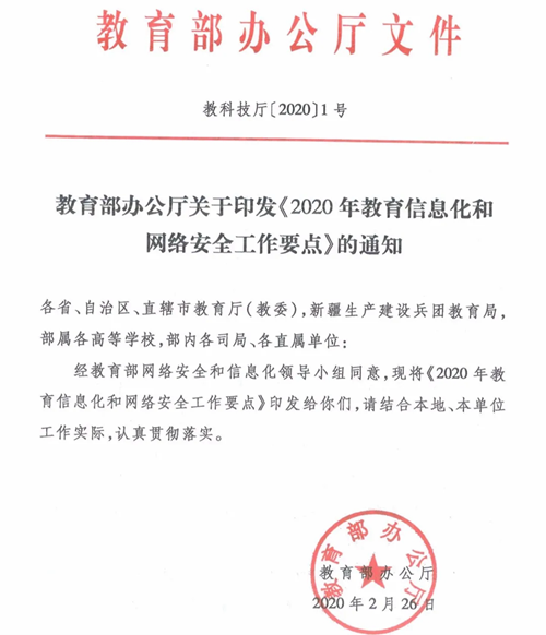 教育部印發《2020年教育信息化和網絡安全工作要點》