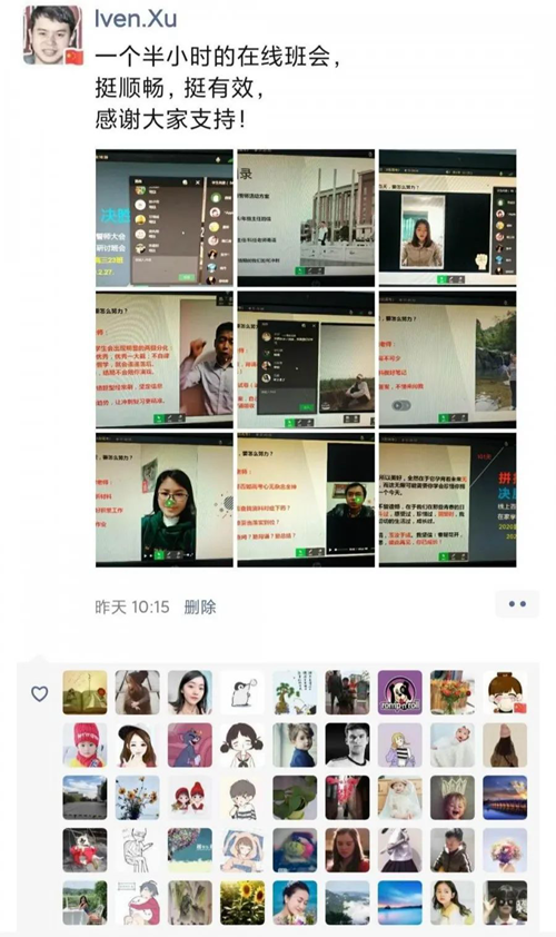 在線直播的過程中,學生可以像用微信一樣直接回復文字,老師也可以語音回復,這種互動相比視頻會議,避免了各種聲音嘈雜而且保證了播放的流暢的優點。在班會開始的5分鐘左右的時間里,學生就差不多都上線了,其播放不卡,畫面清晰。會后同學表示:“這是一次特殊的班會,在這種抗擊疫情的特殊時期,我們全班同學能夠以線上的形式,全員聚在一起,既興奮又覺得充滿了使命感。”