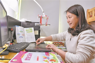 近日,福州教育學院附屬第一小學一年級語文教師李祎為網上教學錄制視頻。新華社記者 姜克紅 攝