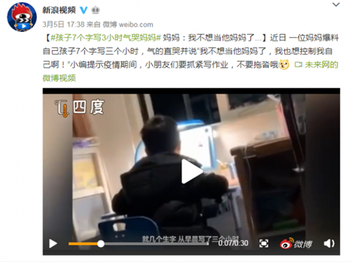 近日,一位熊孩子寫完7個字,歷時三個小時!氣哭了老母親:“我不想當(dāng)他媽媽了,我也想控制我自己啊!”