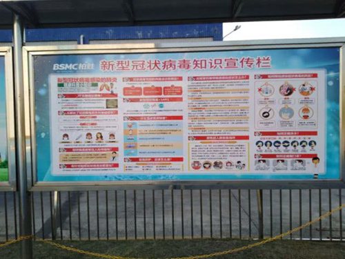 四:加強宣傳引導,提高員工及到訪人員防疫意識,通過入口處的廠區公告欄形式宣揚有關新冠狀病毒知識、防范措施、注意事項宣傳教育。