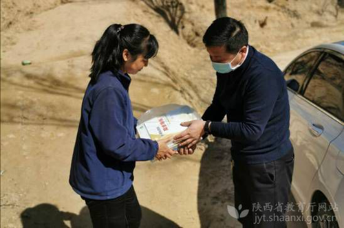 綏德縣實驗中學教師為家住農村的學生上門送書