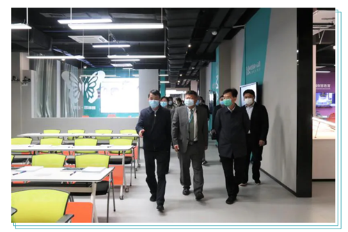 參觀完云蝶華中展廳,宜春市委領導還與陳崗進行了親切交談,對于云蝶智慧教室系列產品產生了極大的興趣并對云蝶智慧課堂產品表示充分的肯定。同時,陳崗也向領導闡述了云蝶科技的未來愿景:云蝶科技愿與豐城市一起秉持“飛地經濟、三地聯動”“設計引領、部市共建”的理念,共同實現打造設計+教育裝備產業生態圈的愿景。