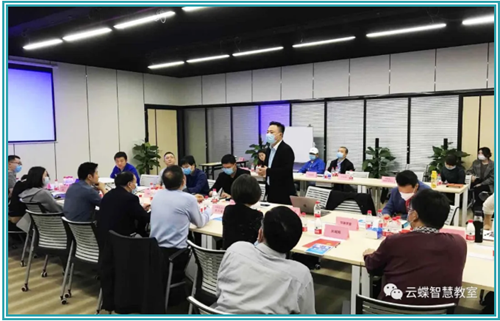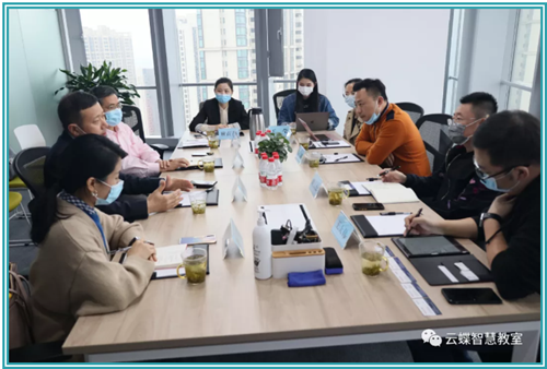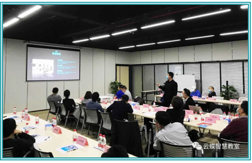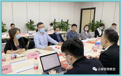 隨后,云蝶科技負責大客戶部的楊軒琳總監為大家介紹了云蝶智慧教室全系列產品和整體解決方案,熱情專業的講解引發了在場與會人員的極大興趣,紛紛提出了想法,針對在座同仁們的提問,云蝶楊晞副總裁同時也與在座的廣東新華發行集團、深圳市方直科技股份有限公司,廣東南方未名教育科技有限公司等代表進行了溝通與交流,各方暢所欲言直抒己見,現場氣氛十分熱烈。