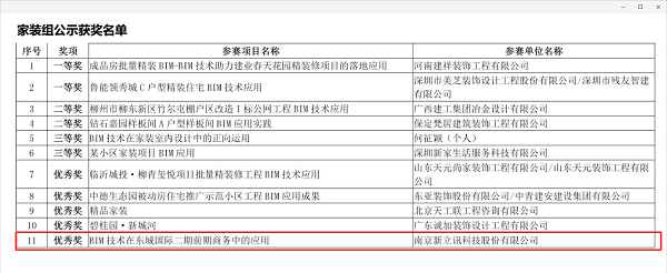 新立訊獲首屆中國建筑裝飾BIM大賽優秀獎