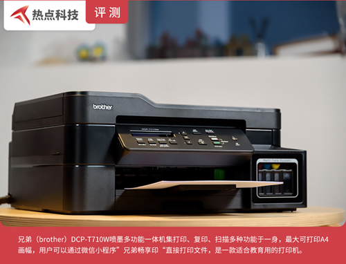 兄弟DCP-T710W是一臺非常經濟易用的噴墨多功能一體機,一套墨盒可以打印數千頁打印紙,支持掃描、復印功能,功能非常多元化,更關鍵的是它能與微信無縫連接,學生可以通過微信小程序“兄弟暢享印”直接打印老師發來的作業,節省了時間,騰出更多時間用于學習。