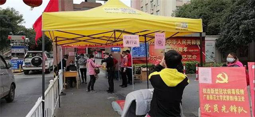 學(xué)生返校時(shí)需要掃碼測(cè)體溫,根據(jù)學(xué)校引導(dǎo)的路線(xiàn)有序入校。 廣西師范大學(xué)供圖