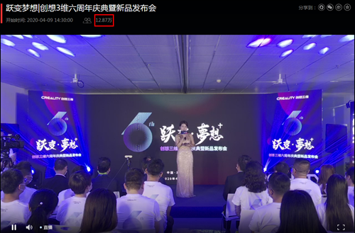 4月9日下午2:30分,以“ 躍變·夢想+”為主題的創想三維6周年慶典暨新品發布會在深圳公司總部舉行。此次活動在南極熊、網易直播、微信、抖音、B站、Facebook、YouTube等直播平臺同步播放,受到了海內外用戶的極大關注。截至發稿時,以上平臺總觀看直播人次超過13萬人次。
