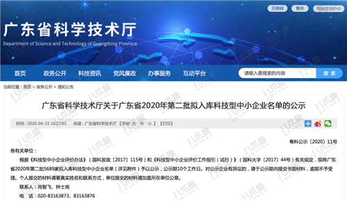省科技廳公布廣東省2020第二批科技型中小企業(yè)名單