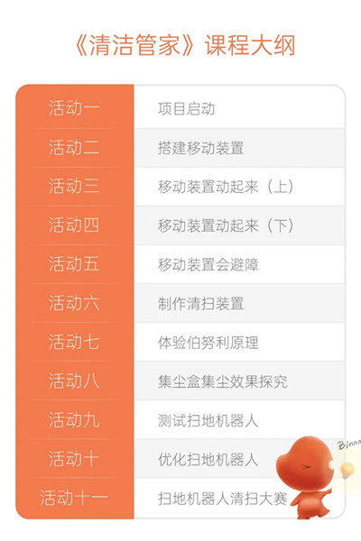 課程內(nèi)容包括掃地機器人的結(jié)構(gòu)組成與工作原理,伯努利原理、電動機、變量等相關(guān)知識,掌握實驗探究的方法,學(xué)會對實驗數(shù)據(jù)進行總結(jié)分析。