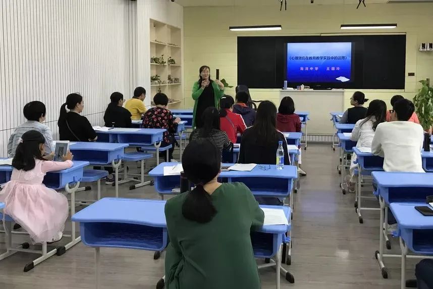 這是老師們回到課堂做學生的場景,海灣中學為老師也開設了課程,致力于提升教師的幸福感和心理素質。