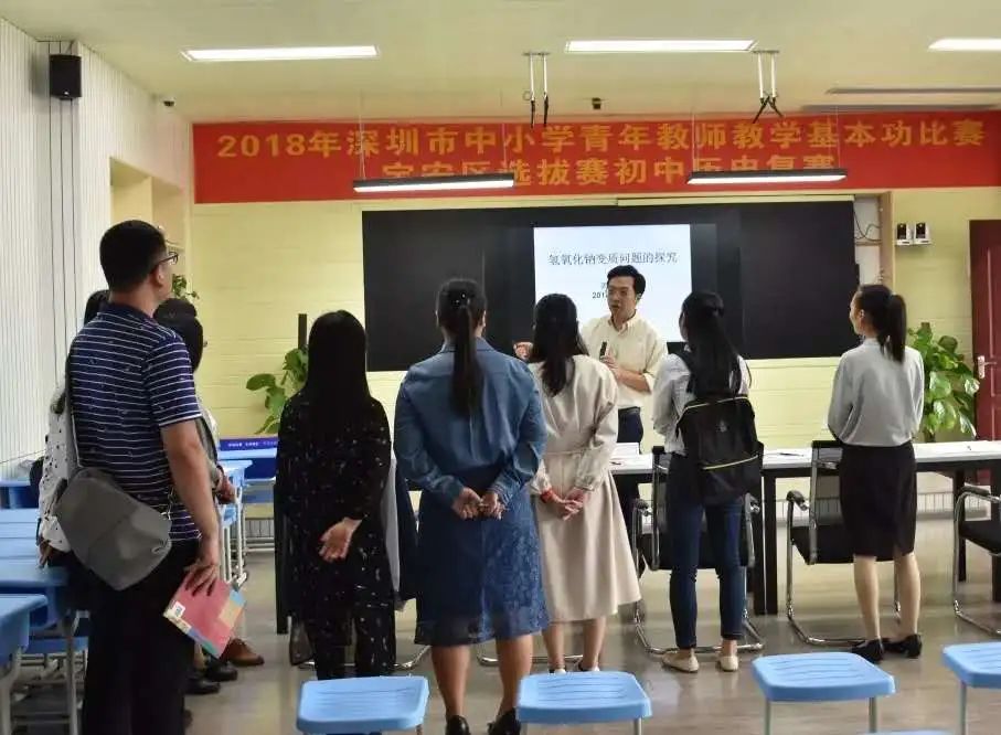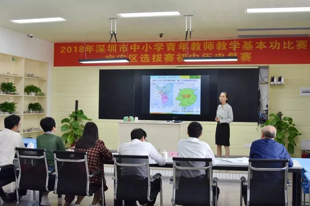 這是一個青年教師競技的舞臺,深圳市寶安區200多名歷史教師在海灣中學參加了研訓活動,經過初賽,評委組評選出了10名教師進行復賽。