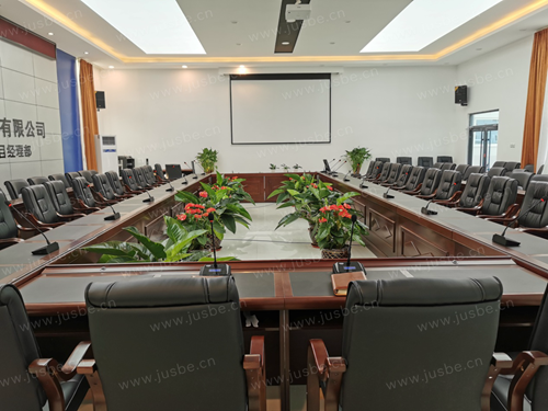 根據該場地面積及現場實際情況,擴聲音響選用的JUSBE高品質PS系列音箱,作為主擴聲音箱,其特點輕巧而又擁有較高的聲壓級,音質表現真實自然。采用壁掛方式安裝在項目部會議室四周,使其聲音覆蓋更加均勻,科學合理配置功放和周邊設備,不僅能夠修飾音質,提高語言的清晰度,更能保障音響系統的安全性和穩定性,從而獲得最佳音質效果!