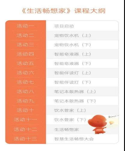 《生活暢想家》以用科學技術解決生活中的小問題作為切入點,引導學生以設計師和工程師的身份設計并制作多個智能產品小模型,親身感受智能化的產品為生活帶來的便捷。課程主要針對四年級的學生,共計16個課時。