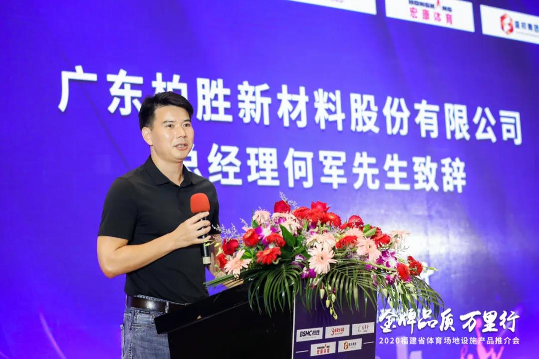 今天在場的五家主辦單位,均是體育產業里的佼佼者,自身品牌建設也趨于完善,品牌經濟發展成熟,此次推薦產品從傳統制造業,向智造發展,山東盛邦的拼裝泳池、華夏北斗星照明設備、BSMC柏勝的硅PU跑道和球場運動場面層材料、河北宏康的體育運動器材、杰帝奇軟塑拼裝地板,都在體育場地設施建設行業,傳承創新,未來可期,大家共同見證,共創輝煌。