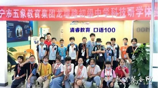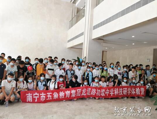 未來的教室是什么樣的?智慧校園有哪些新奇之處?7月23日-25日,南寧市五象教育集團龍堤路初級中學組織七年級500多名新生分5個批次前往廣西教育裝備展示體驗中心開展科技研學之旅。